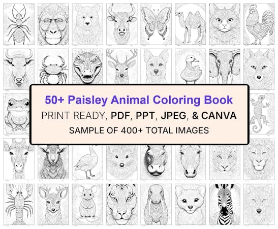 - Paisley Animal Coloring Books