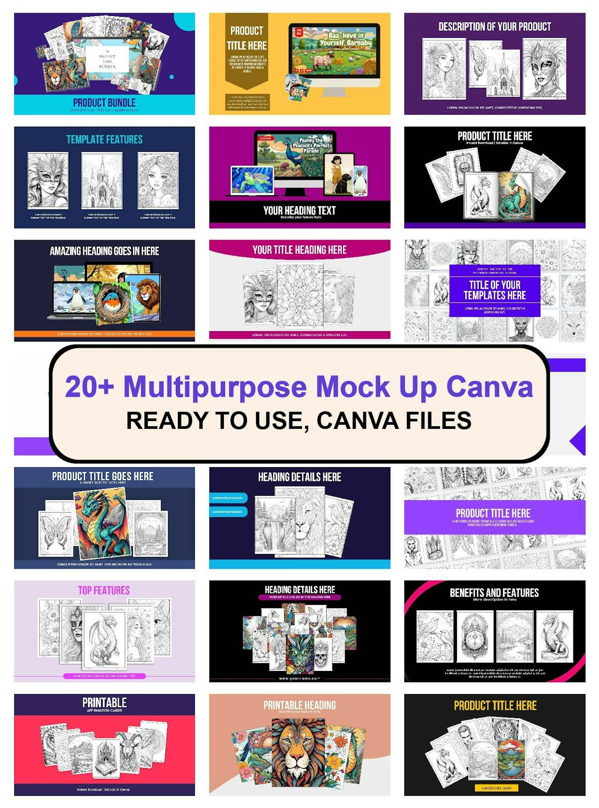 Make your adult coloring book products and promotions more captivating with stunning mockup designs, perfectly crafted to boost appeal and maximize conversions!